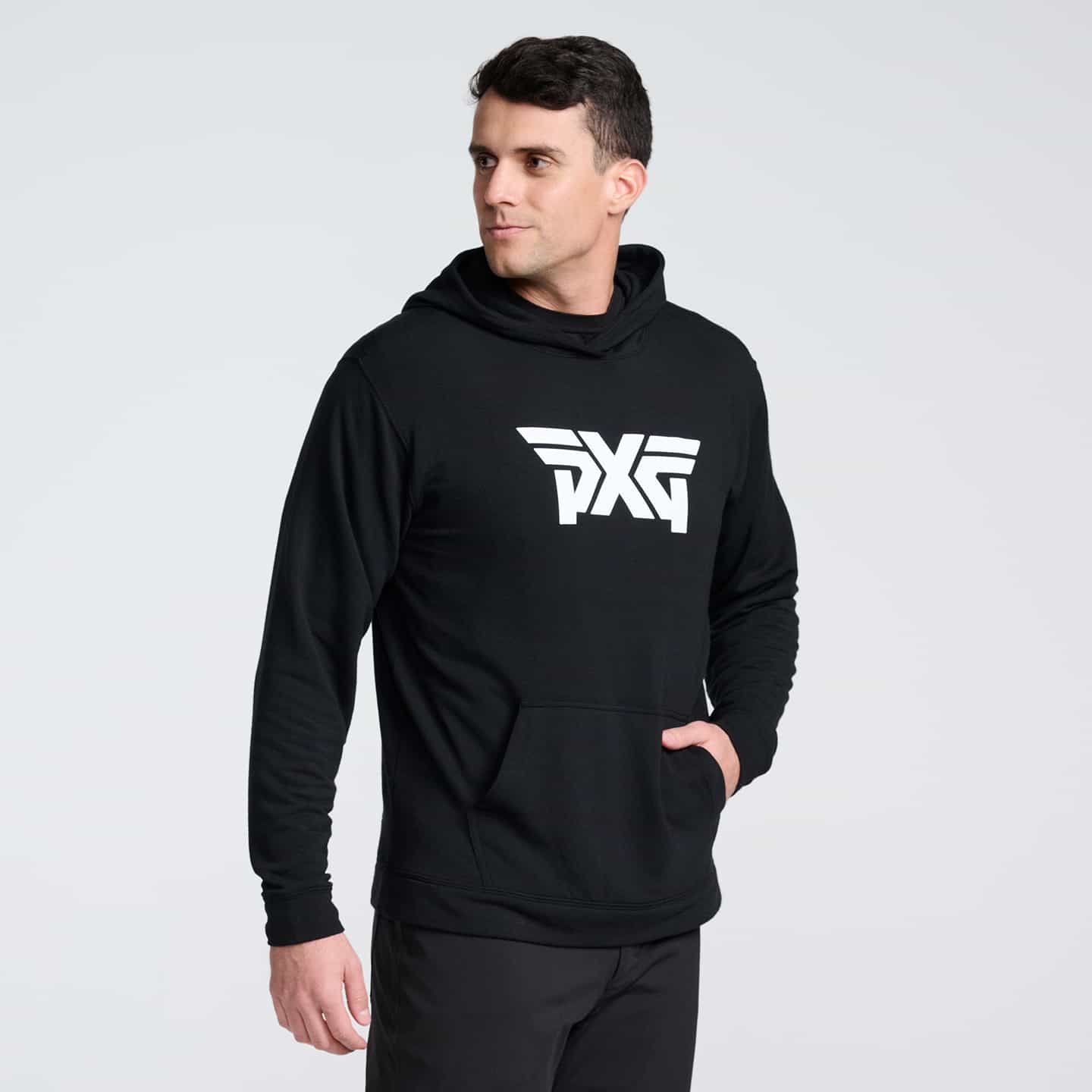 Wrap yourself in warmth in our Clubhouse Cozy Hoodie. Ultra-soft and comfortable with a light stretch, this fitted black hoodie features white PXG logos on the front chest and back lower right side. Wear yours to the range, on a hike, or just lounging around on the weekend.